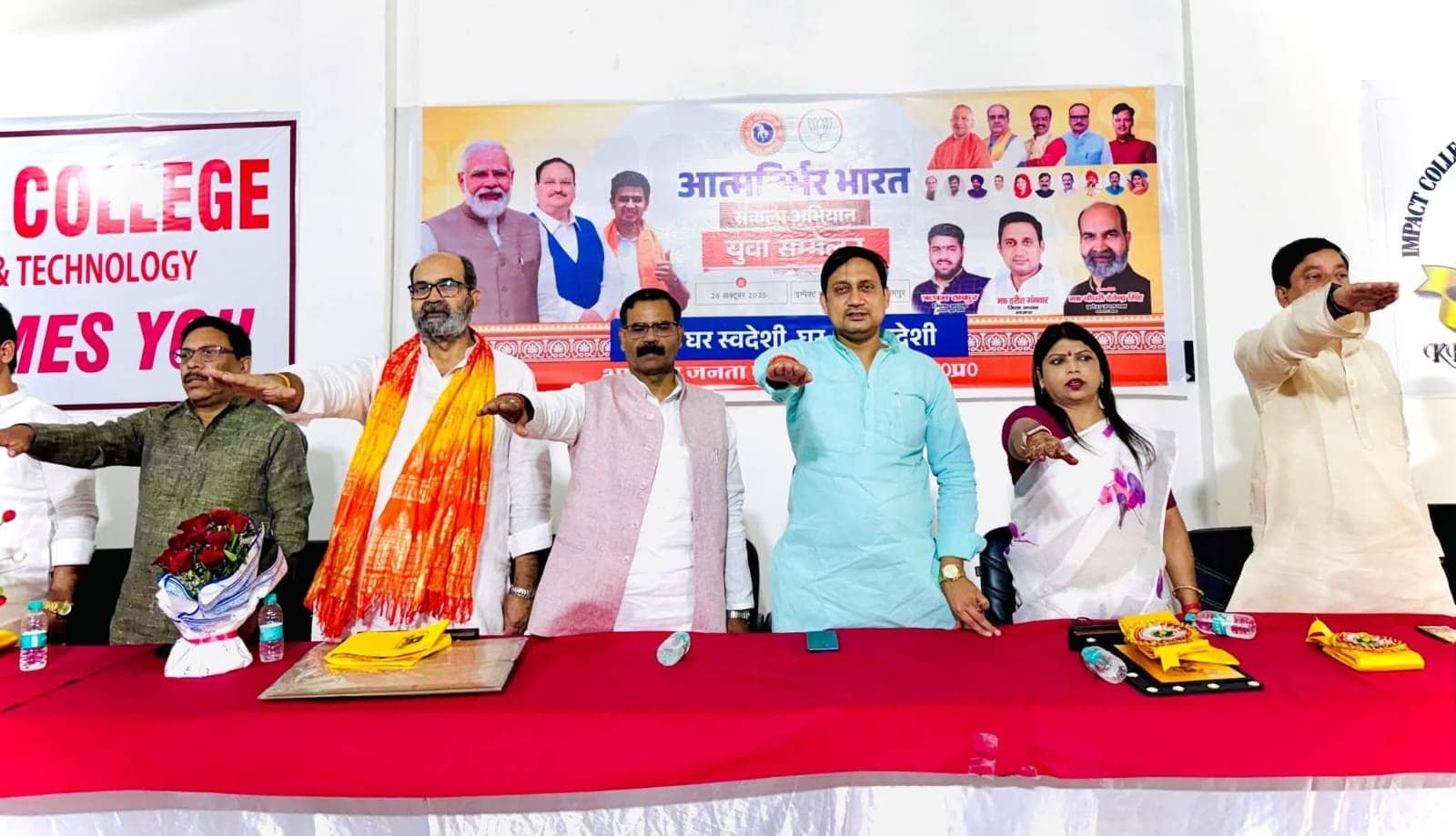 रामपुर के धूनापुर ग्राम पर स्थित इंपैक्ट कॉलेज में आयोजित आत्मनिर्भर भारत संकल्प अभियान के अंतर्गत युवा सम्मेलन के मुख्य अतिथि के रूप में पूर्व प्रदेश उपाध्यक्ष देवेंद्र चौधरी ने युवाओं को संबोधित किया।