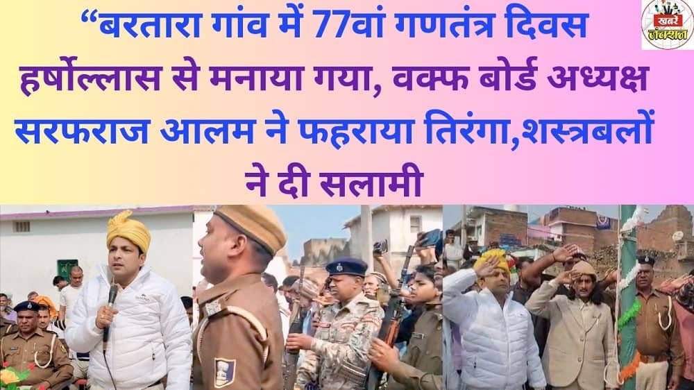 “बरतारा गांव में 77वां गणतंत्र दिवस हर्षोल्लास से मनाया गया, वक्फ बोर्ड अध्यक्ष सरफराज आलम ने फहराया तिरंगा,शस्त्रबलों ने दी सलामी
