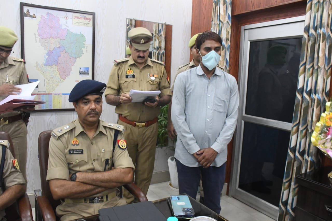 रामपुर। रामपुर में राईट व म्यूटल वेनिफिट इण्डिया निधि लिमिटेड के नाम से फर्जी कम्पनी बनाकर एवं फर्जी खाते खोलकर वादी एवं वादी के अन्य 51 साथियों के 14,30,917 रूपये हडप लेने के आरोप में वर्ष 2018 से फरार चल रहा 15,000/- का इनामी/मफरूर अभियुक्त ताहिर एक अदद तमंचा 315 बोर मय 7 अदद जिन्दा कारतूस के साथ गिरफ्तार किया गया, वहीं एसपी ने प्रेस कॉन्फ्रेंस करते हुए बताया कि इसके ऊपर 8 मुकदमें मुरादाबाद और टांडा थाने में दर्ज है.