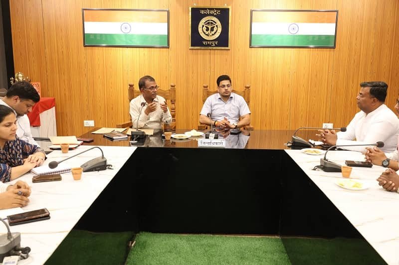 रामपुर: जिला निर्वाचन अधिकारी/जिलाधिकारी जोगिंदर सिंह ने जनपद के समस्त मान्यता प्राप्त राष्ट्रीय/राज्यीय राजनैतिक दलों के प्रतिनिधियों के साथ कलेक्ट्रेट सभागार में बैठक की।