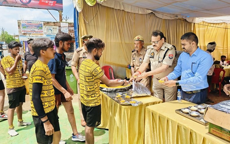 डीएम, एसएसपी ने इस दौरान कांवड़ियों के साथ बैठकर प्रसाद ग्रहण किया तथा कांवड़ियांे को प्रसाद वितरण भी किया।