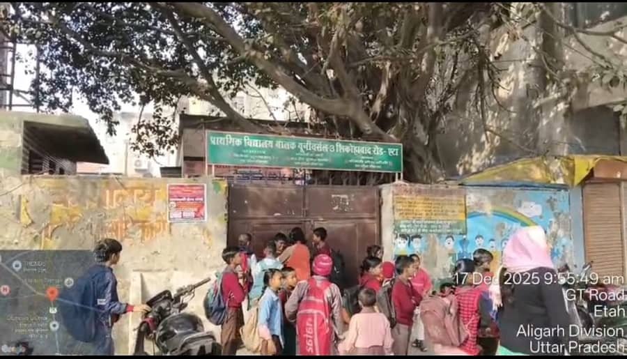 एटा। जनपद एटा की शिक्षा व्यवस्था एक बार फिर सवालों के घेरे में आ गई है। शिकोहाबाद रोड स्थित एक प्राथमिक विद्यालय में निर्धारित समय प्रातः 9:30 बजे तक भी स्कूल नहीं खुल सका। हैरानी की बात यह रही कि सुबह 9:56 बजे तक भी विद्यालय का गेट बंद रहा, जबकि दर्जनों बच्चे समय पर अपने कंधों पर बस्ते टांगे बाहर खड़े इंतजार करते रहे।