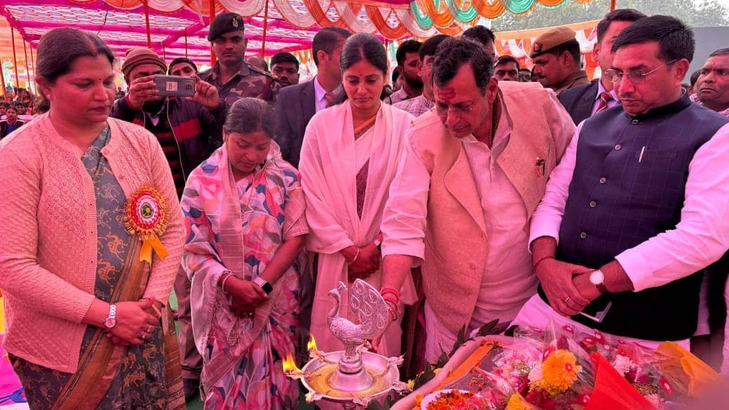 मिर्जापुर। उत्तर प्रदेश के 76वें स्थापना दिवस कार्यक्रम का आयोजन स्थानीय जी0आई0सी0 ग्राउंड महुवरिया मीरजापुर में आयोजित किया गया। कार्यक्रम का शुभारम्भ मा0 केन्द्रीय राज्यमंत्री परिवार कल्याण एवं रसायन उर्वरक श्रीमती अनुप्रिया पटेल, मा0 विधायक नगर श्री रत्नाकर मिश्र, मा0 विधायक मड़िहान श्री रमाशंकर सिंह पटेल, मा0 विधायक मझंवा श्रीमती सुचिस्मिता मौर्या, मा0 विधायक छानबे श्रीमती रिंकी कोल, अध्यक्ष जिला पंचायत राजू कनौजिया, अध्यक्ष नगर पालिका मीरजापुर श्याम सुन्दर केेसरी, जिला अध्यक्ष अपना दल एस इंजीनियर राम लौटन बिन्द, जिलाधिकारी प्रियंका निरंजन द्वारा दीप प्रज्जवलित कर किया गया। जिलाधिकारी प्रियंका निरंजन व मुख्य विकास अधिकारी विशाल कुमार द्वारा मा0 अतिथिगणो को बुके देकर स्वागत व अभिनंनदन किया गया। लखनऊ में आयोजित मा0 मुख्यमंत्री जी के कार्यक्रम का एल0ई0डी0 प्रचार वाहन द्वारा सजीव प्रसारण कर लोगो को दिखाया गया। सूचना विभाग के पंजीकृत शिव लाल गुप्ता, अमर नाथ शुक्ल के उत्तर प्रदेश दिवस पर आधारित गीत व जटाशंकर के द्वारा चैलर नृत्य की प्रस्तुति दी गई। विभिन्न विद्यालयों के स्कूली बच्चों के द्वारा सांस्कृति कार्यक्रम की प्रस्तुति दी गई। इस अवसर पर मा0 केन्द्रीय राज्यमंत्री व मा0 जनप्रतिनिधिगणो के द्वारा बाल विकास एवं पुष्टाहार विभाग के 02 गोदभराई 02 अन्नप्राशन एक कराया गया तथा पीस्कूल किट का वितरण किया गया। इसके अतिरिक्त उद्योग विभाग के 05 लाभार्थियो को प्रमाण पत्र/डेमो चेक मुख्यमंत्री युवा स्वारोज/विश्वकर्मा श्रम सम्मान योजना, कृषि विभाग के 05 लाभार्थियों के कृषि यंत्रीकरण व प्रमाण पत्र, उद्यान विभाग के 05 कृषको प्रशस्ति पत्र, समाज कल्याण विभाग के 05 लाभार्थियों को प्रमाण पत्र, आर0एन0एल0एम0 के 05 को डेमो चेक़, प्रमाण पत्र बी0सी0 सखी 02 व बैंक सखी 02, जिला खादी ग्रामोद्योग के 05 दो प्रधानों को सम्मान प्रमाण पत्र, प्रोबेशन विभाग के 05 लाभार्थियों को प्रमाण पत्र, मत्स्य विभाग के 05 लाभार्थियों को प्रमाण पत्र, पंचायती राज विभाग के 05 दो प्रधानों को सम्मान प्रमाण पत्र, 03 विन्ध्य स्वच्छता मार्ट प्रामण पत्र/चाभी वितरण, दिव्यांग कल्याण विभाग के 10 लाभार्थिया को दिव्यांग किट, यू0पी0 नेडा के 05 लाभार्थिया को प्रमाण पत्र, आवास 02 प्रधानमंत्री ग्रामीण एवं 02 मुख्यमंत्री आवास ग्रामीण के लाभार्थियों को चाभी वितरण, प्री स्कूल किट आंगनबाड़ी के 50 लाभार्थियों को लाभान्वित किया गया। उत्तर प्रदेश के स्थापना दिवस के अवसर पर विभिन्न विभागो द्वारा कुल 21 स्टाल लगाकर अपने-अपने विभागो द्वारा संचालित योजनाओं आए हुए लाभार्थियों जानकारी दी गई मुख्यमंत्री कन्या सुमंगला योजना के अन्तर्गत नवनिहाल के साथ केक 