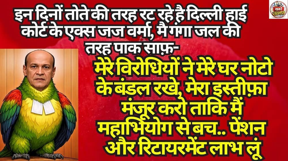 इन दिनों तोते की तरह रट रहे है दिल्ली हाई कोर्ट के एक्स जज वर्मा, मै गंगा जल की तरह पाक साफ़- मेरे विरोधियों ने मेरे घर नोटो के बंडल रखे, मेरा इस्तीफ़ा मंजूर करो ताकि मैं महाभियोग से बच.. पेंशन और रिटायरमेंट लाभ लूं