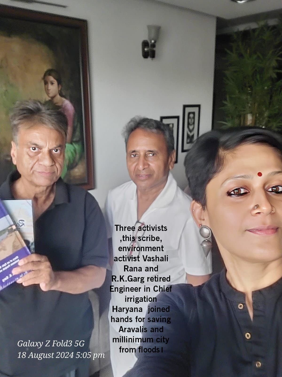 Three activists in one frame-Pledged to work together for saving Aravalis ,Issue of dumping of solid waste and problem of floods in the millinimum city.This scribe , Vaishali Rana environment activist working for ”
