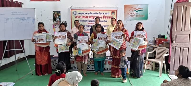 आसफपुर। स्थानीय क्षेत्रीय ग्राम्य विकास प्रशिक्षण संस्थान में एफएनएचडब्ल्यू M-1 (खाद्य, पोषण, स्वास्थ्य और स्वच्छता) के तहत आईसीआरपी महिलाओं का तीन दिवसीय आवासीय प्रशिक्षण बुधवार देर शाम सफलतापूर्वक संपन्न हुआ। यह कार्यक्रम शासन की मंशा के अनुरूप आयोजित किया गया था, जिसमें महिलाओं को स्वास्थ्य, पोषण, और स्वच्छता के विभिन्न पहलुओं पर जानकारी दी गई।