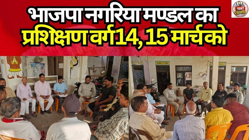 न्यौली: भारतीय जनता पार्टी नगरिया मण्डल की वर्ग संचालन समिति की आवश्यक बैठक सेंट वी0 एन0 पब्लिक स्कूल मिर्जापुर मानपुर नगरिया पर मण्डल अध्यक्ष मनोज चौहान की अध्यक्षता में सम्पन्न हुई। बैठक में आगामी 14 -15 मार्च को आयोजित होने वाले पण्डित दीनदयाल उपाध्याय मण्डल प्रशिक्षण वर्ग 2026 की कार्ययोजना तय की गई एवं कार्यकर्ताओं को वर्ग को सफल बनाने हेतु जिम्मेवारी सौंपी गई। इस अवसर पर मुख्य अतिथि जिलामंत्री कृष्णकांत वशिष्ठ ने उपस्थित कार्यकर्ताओं को बताया कि भारतीय जनता पार्टी ही एकमात्र दल है जो पार्टी में कार्य करने वाले कार्यकर्ताओं को विधिवत प्रशिक्षण देने का काम करता है। उन्होंने बताया कि दो दिवसीय इस प्रशिक्षण में सात सत्रों के माध्यम से विषय विशेषज्ञ कार्यकर्ताओं को पार्टी की रीति नीतियों से अवगत कराते हुए उनको प्रशिक्षित करने का कार्य करेंगे। बैठक की अध्यक्षता कर रहे मण्डल अध्यक्ष मनोज चौहान ने कहा कि यह वर्ग आवासीय रहेगा जिसमें सभी कार्यकर्ताओं को वर्ग स्थल पर ही रात्रि विश्राम की व्यवस्था होगी। उन्होंने सभी कार्यकर्ताओं से वर्ग को सफल बनाने का आह्वान किया। इस दौरान बैठक में प्रमुख रूप से वरिष्ठ भाजपा नेता ब्रह्मानंद सोलंकी,मण्डल महामंत्री देवेन्द्र पचौरी, मण्डल उपाध्यक्ष अभय प्रताप सोलंकी, मण्डल मंत्री रवि दिवाकर, ओम सिंह सागर, कोषाध्यक्ष रवि चोपड़ा, शक्तिकेंद्र संयोजक किशोर चौहान, संजय बघेल,वीरेश लोनिया, रामू सोलंकी, विपिन चौहान, आदि कार्यकर्ता सम्मिलित रहे।