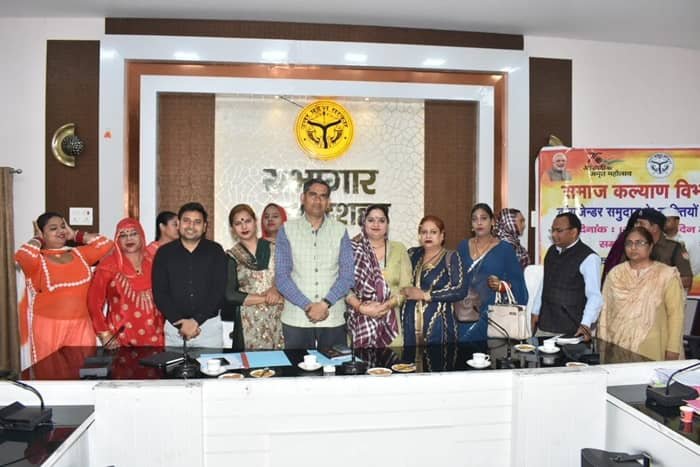 बुलन्दशहर – कलेक्ट्रेट सभागार में स्वीप कार्यक्रम के तहत जिलाधिकारी चंद्र प्रकाश सिंह की अध्यक्षता में ट्रांसजेंडर समुदाय के सदस्यों के साथ मतदाता जागरूकता कार्यक्रम का अयोजन किया गया। इस अवसर पर ट्रांसजेंडर सदस्यों से अपील की गई की जिनका वोट नहीं बना है वह आज ही वोट बनवाने के लिए फॉर्म भर दे। मतदान के दिन पहले घंटे में सबसे पहले सभी ट्रांसजेंडर अपने मत का प्रयोग करें। मतदान करने के लिए अन्य लोगों को भी प्रेरित करें। ट्रांसजेंडर की दोनों गुरूओ से अपील की गई कि वह भी मतदान करने के लिए सभी ट्रांसजेंडरो से अपील करे। इस अवसर पर ट्रांसजेंडर सदस्यो ने अपनी समस्याओं से अवगत कराया गया जिसके निस्तारण के लिए जिलाधिकारी ने सम्बन्धित अधिकारियों को निर्देश दिए। जिला अस्पताल में उपचार दिलाने, आयुष्मान कार्ड, राशन कार्ड बनवाए जाने के लिए भी अनुरोध किया गया। जिलाधिकारी ने ट्रांसजेंडर को अस्पताल में उपचार एवं आयुष्मान कार्ड बनवाए जाने के निर्देश दिए। उन्होंने कहा कि अपना आई कार्ड बनवा ले और उसको अस्पताल आदि जगह पर दिखा दे। इस अवसर पर सीडीओ कुलदीप मीना, अपर जिलाधिकारी वित्त राजस्व विवेक कुमार मिश्रा, सीओ मधुप सिंह सहित संबंधित अधिकारी उपस्थित रहे।