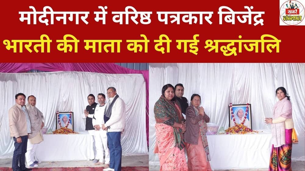 मोदीनगर। वरिष्ठ पत्रकार बिजेंद्र भारती की माता स्वर्गीय रेशम देवी, धर्मपत्नी स्वर्गीय तेजपाल सिंह, की श्रद्धांजलि सभा का आयोजन किया गया। श्रद्धांजलि सभा में क्षेत्र के अनेक जनप्रतिनिधि, सामाजिक कार्यकर्ता, राजनीतिक दलों के नेता एवं पत्रकार साथी उपस्थित रहे। सभी ने स्वर्गीय रेशम देवी के चित्र पर पुष्प अर्पित कर भावभीनी श्रद्धांजलि दी।