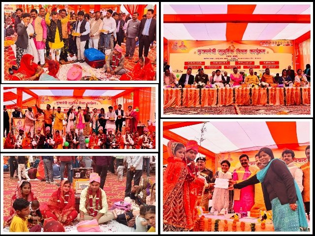 मुख्यमंत्री सामूहिक विवाह योजना अंतर्गत 107 जोड़ों का सामूहिक विवाह संपन्न, दहेज मुक्त विवाह की शपथ दिलाई गई