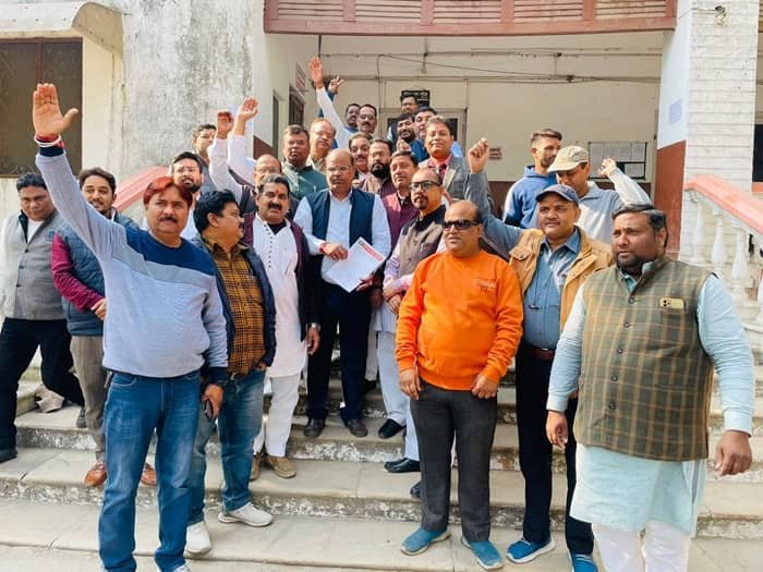 भाजपा अध्यक्ष हंसराज पप्पू के नेतृत्व में कलेक्ट्रेट में कांग्रेस के घोटालों के खिलाफ राज्यपाल के नाम दिया ज्ञापन