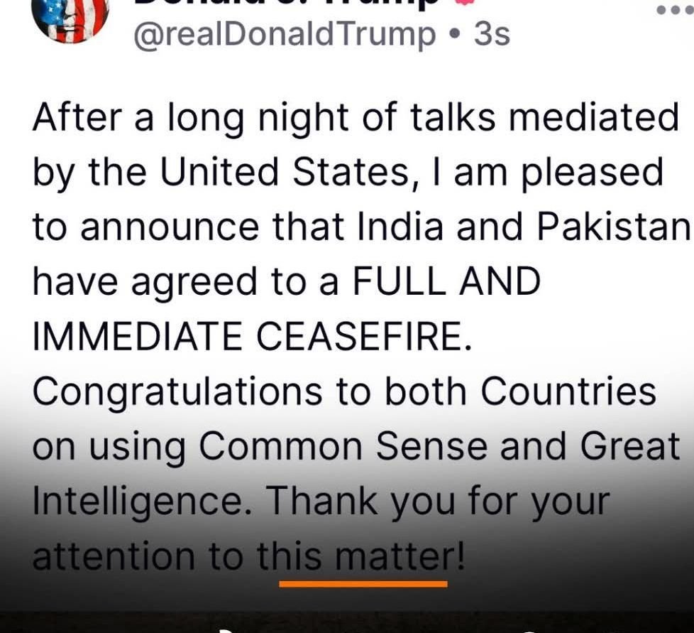 हालांकि इस दावे के बाद अब तक भारत या पाकिस्तान सरकार की ओर से इस पर कोई आधिकारिक पुष्टि नहीं की गई है।