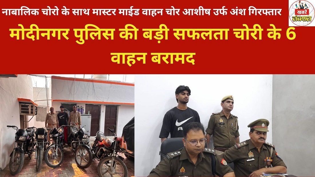 मोदीनगर : थाना मोदीनगर पुलिस को बड़ी सफलता मिली है। पुलिस ने 6 वाहन चोरो को गिरफ्तार किया है। जिनके कब्जे से 6 बाईक भी बरामद की गई है। इन सभी आरोपियों में, मास्टर माइंड आशीष उर्फ अंश बताया जा रहा है। 5 नाबालिक चोर गिरफ्तार किए हैं। जानकारी के अनुसार आशीष नाबालिक बच्चो को लालच देकर, इन पांचों बाल अपचारियो से बाईक चोरी कराया करता था। और चोरी की बाईको को मोडिफाइड करके व चेसिस नम्बर मिटाकर बाईको को बेचने का काम आशिष किया करता था। और यह काम तकरीबन दो साल से कर रहा था। कहने के लिए आशिष एक मैडिकल स्टोर पर काम करता था। लेकिन अंदर खाने बच्चो से बाईक चोरी कराकर बेचा करता था। बाईक भी पुरानी चोरी कराया करता था। ताकि पुरानी बाईको की कोई पुलिस में शिकायत दर्ज ना करा सके। नाबालिको को इस तरह घिनौने अपराध में धकेलने वाले मास्टर माइंड आशिष के खिलाफ। बाल अपचारियो के परिजनों में और कालोनी के लोगों में गुस्से का माहौल है। चोरी के रूपयो से गर्लफ्रेंड को महंगे गिफ्ट देने का व अपने सौंक मौज पूरा करने का काम किया करते थे। पुलिस ने आशिष को जेल भेज दिया है। और सभी बाल अपचारियो को बाल सुधार गृह भेजा गया। आशिष का एक साथी अभी फरार है। उसकी भी तलाश की जा रही है।