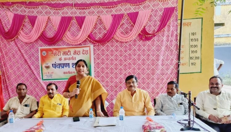 कार्यक्रम में सांसद डॉ संघमित्रा मौर्य ने संगठन के पदाधिकारी और प्रांगण में उपस्थित सभी को पंचप्रण की शपथ दिलाई। इस क्रम में नगर पालिका प्रांगण में लगे शीला फलकाम का सांसद डॉ संघमित्रा मौर्य ने अनावरण किया।
