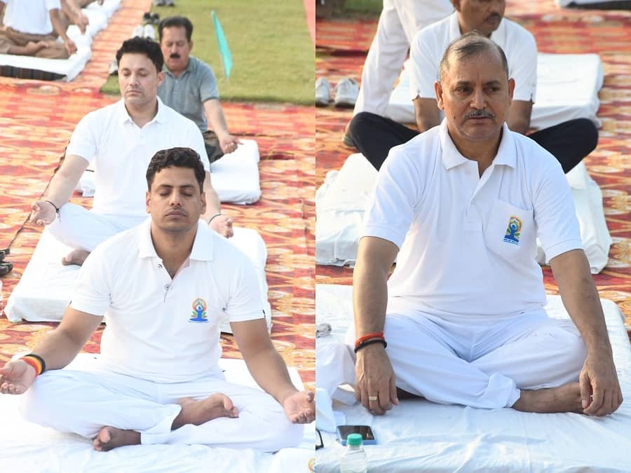 जनप्रतिनिधि एवं अधिकारियों की उपस्थिति में पुलिस लाइन परिसर में 11वें अंतर्राष्ट्रीय योग दिवस पर आयोजित हुआ योगाभ्यास कार्यक्रम